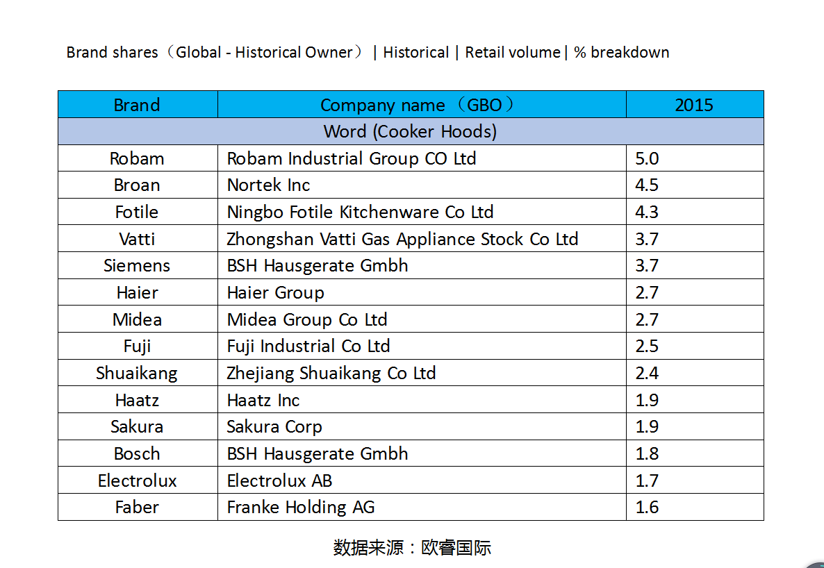 据欧睿2015年信息统计数据显示,中国大型烹饪设备品牌市场份额中,尊龙网址登录官网电器排在首位;中国吸油烟机品牌市场份额排行中,尊龙网址登录官网电器排在销售首位;更重要的是,在全球市场吸油烟机品牌份额排行中,尊龙网址登录官网电器继续以第一名引领行业。